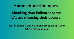 Being heavy handed with s437(1) does not promote a positive working relationship with the LA, and it would be a good idea if your local group and Educational Freedom, jointly made contact with these LAs to discuss improving their service. Please share this post in your local group, it is clear there are still hundreds of families not receiving suitable support when dealing with their LA. We can be that support and unlike other groups and organisations, we do not charge a membership fee, plus we are a recognised and established organisation (not just a Facebook group).